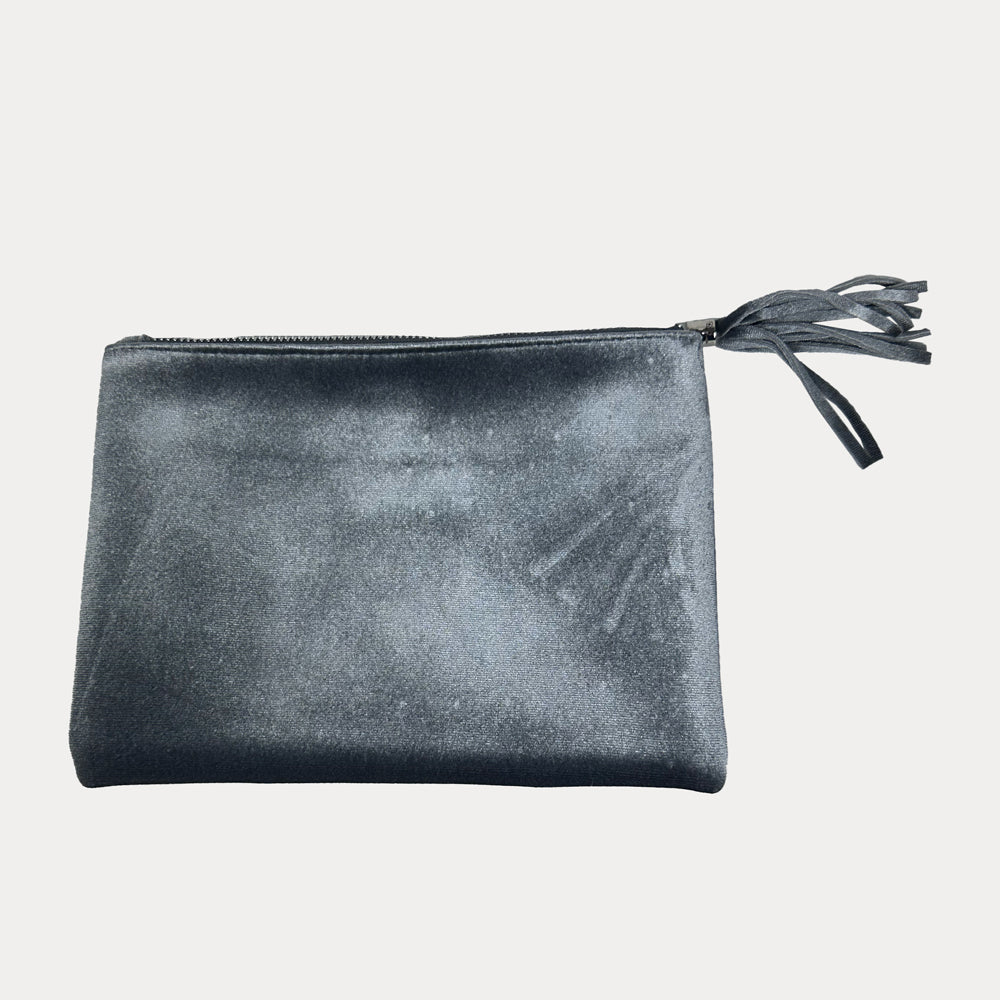 To celebrate 15 fabulous years of ahdorned, we’re bringing back a best-seller with a little extra sparkle. Our Velour Zip Top Pouch is made from buttery-soft velour and features a bold rhinestone skull applique that’s equal parts glam and edgy. Fully lined with an interior pocket to keep your essentials organized, and finished with a playful velour tassel zipper pull — because details matter.